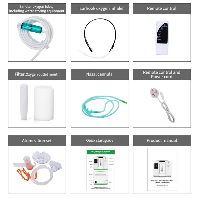 Trọn bộ sản phẩm Máy tạo Oxy DEDAKJ DE-2AW 2-9 lít bao gồm: